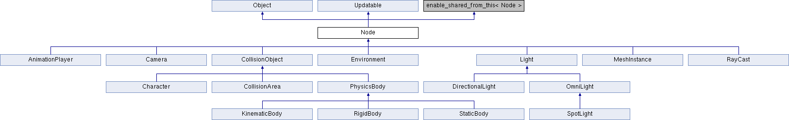 | enum | Type { ANIMATION_PLAYER, CAMERA, CHARACTER, COLLISION_AREA, COLLISION_OBJECT, DIRECTIONAL_LIGHT, ENVIRONMENT, KINEMATIC_BODY, LIGHT, MESH_INSTANCE, NODE, OMNI_LIGHT, PHYSICS_BODY, RAYCAST, RIGID_BODY, SKYBOX, SPOT_LIGHT, STATIC_BODY, VIEWPORT } |