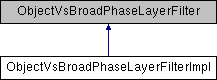 Inheritance diagram for ObjectVsBroadPhaseLayerFilterImpl:Public Member Functions | |